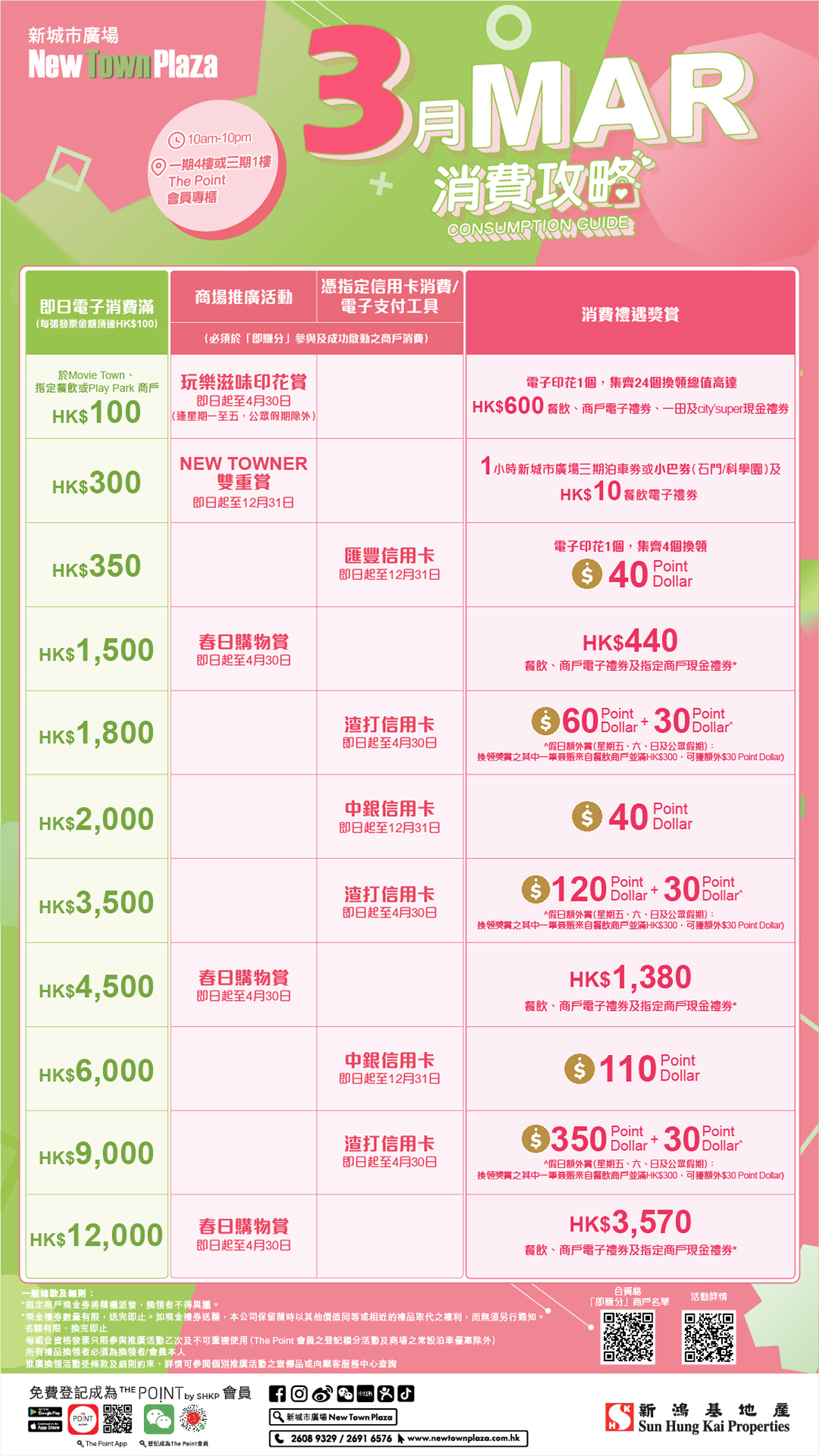 Summary Table of New Town Plaza's Spending Rewards Programs (Mar)